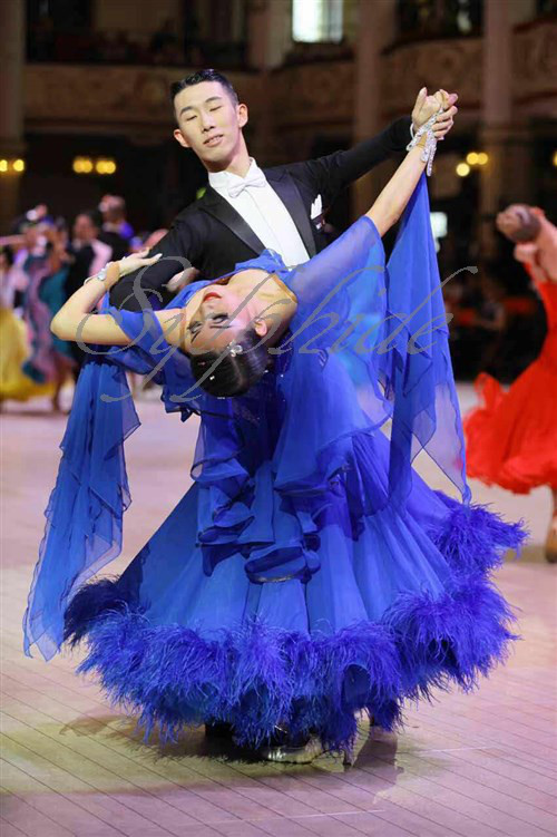 Sold Out☆【当社仕入・試着可・レンタル可】モダン【SM-099・ブルーたっぷりフリル・オーストリッチ】