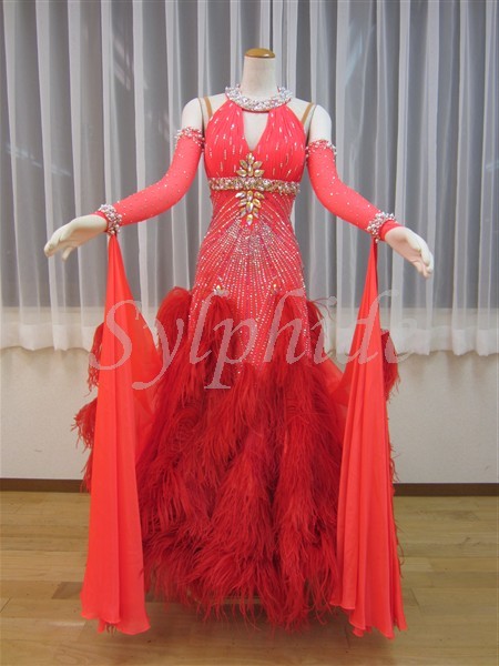Sold Out☆値下げ!【依託・試着可・レンタル可】パソ・ラテン・モダン兼用ドレス【L-97・赤3WAYドレス】