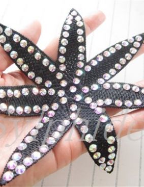 星型のモチーフレース(黒)に、高品質のクリスタルストーンをあしらい、綺麗に輝きます。