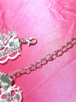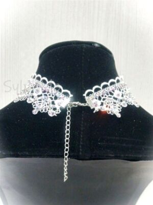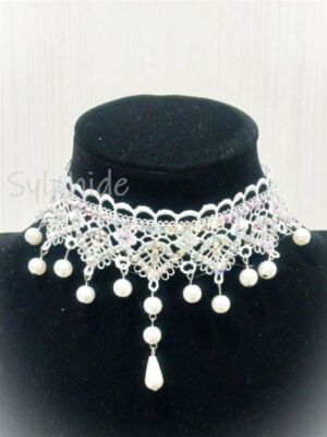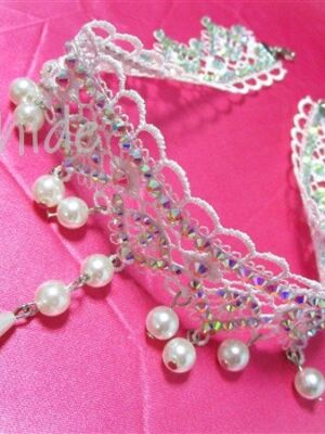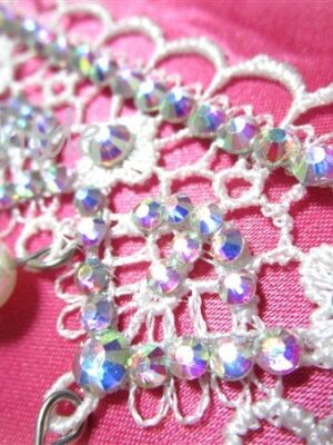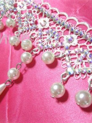 白の美しいレースにオーロラのクリスタルストーンとパールをあしらった、エレガントで可憐なチョーカー。