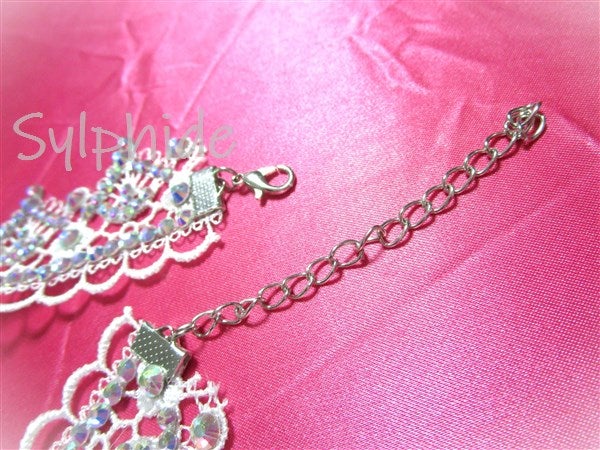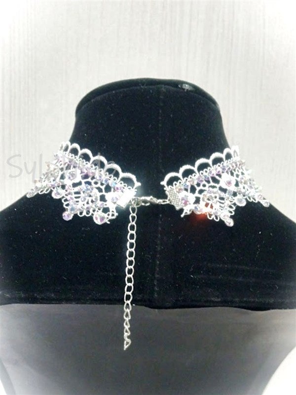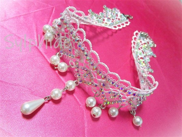 白の美しいレースにオーロラのクリスタルストーンとパールをあしらった、エレガントで可憐なチョーカー。