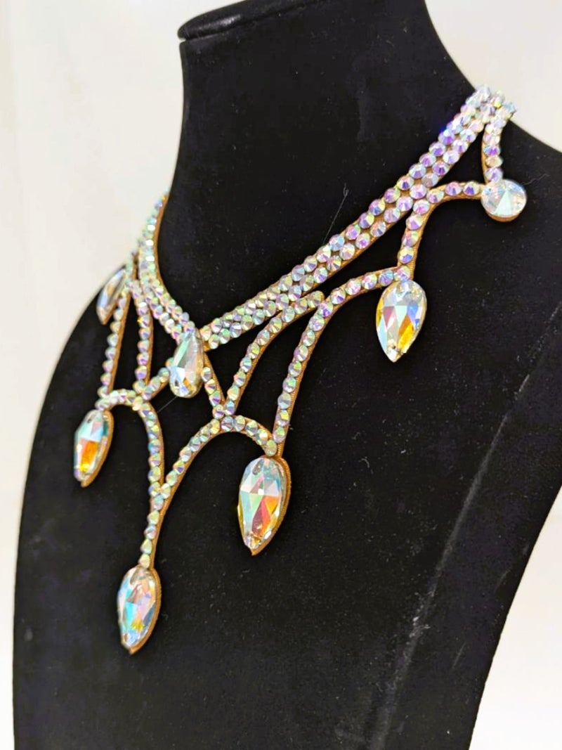 美しい曲線で胸元を飾る、豪華なネックレス。