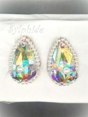 ストーンは高品質なクリスタル。オーロラ加工を施してあるので見る角度により表情豊か。