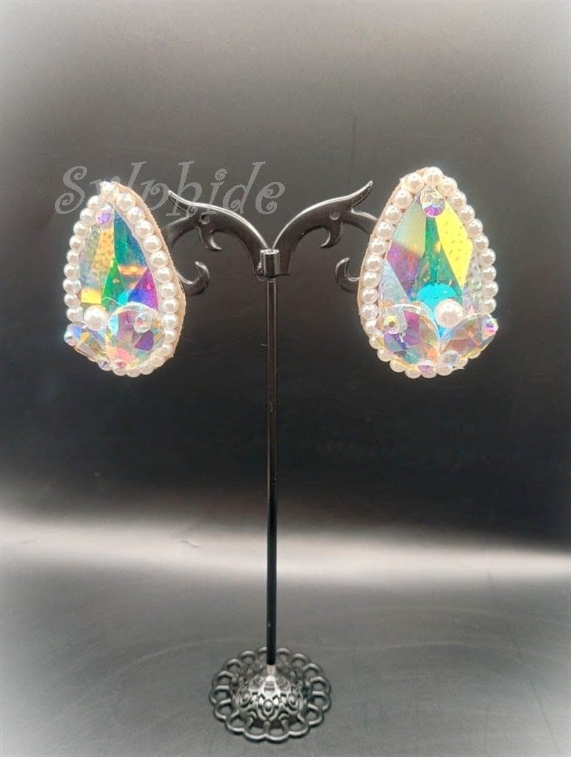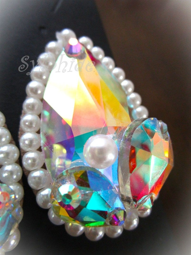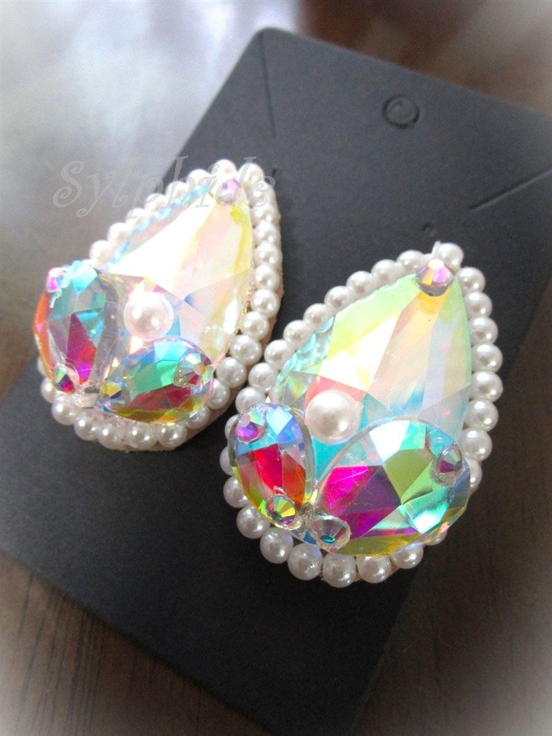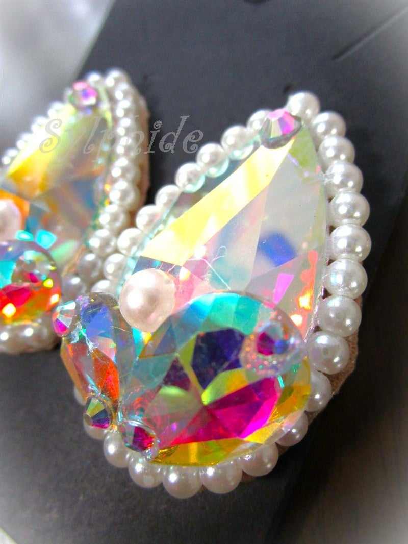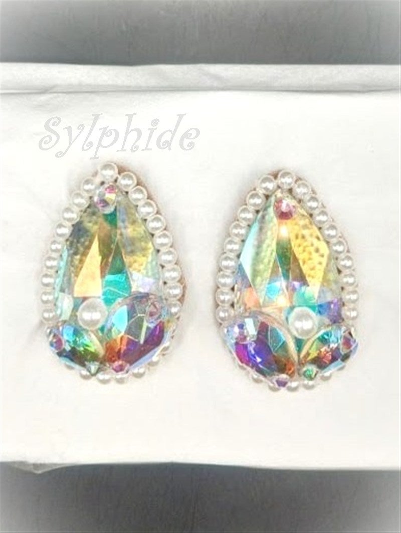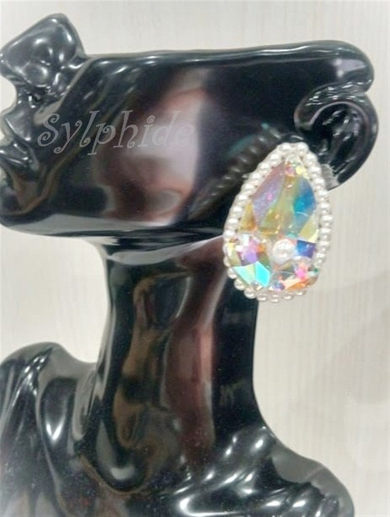 ストーンは高品質なクリスタル。オーロラ加工を施してあるので見る角度により表情豊か。