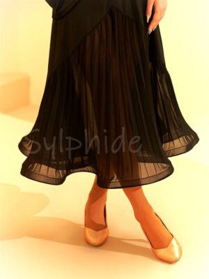 プリーツのジョーゼット。裾にはソフトボーンが縫い込まれ、くりん‥とカールした裾ラインがチャーミング。