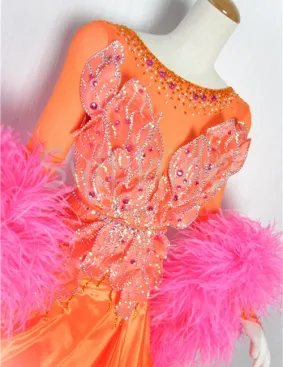 1~2枚目:オレンジ・サテンシフォン・裾ホースヘアー縫い込み