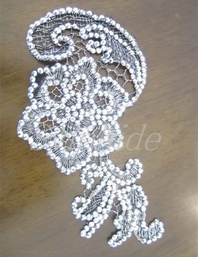 伸縮性のある、薄手の濃紺のレース生地に、柄に沿ってスワロフスキーを