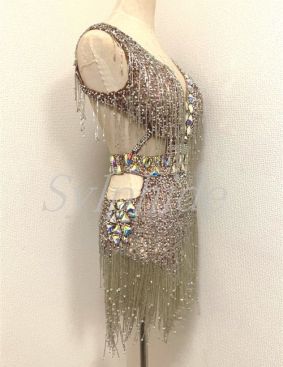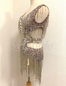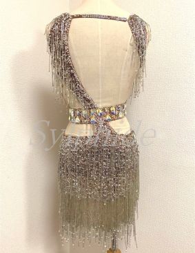 ドレス全体に大量に使用したストーンとビーズフリンジが大変豪華で、眩しいほどに輝くドレス。