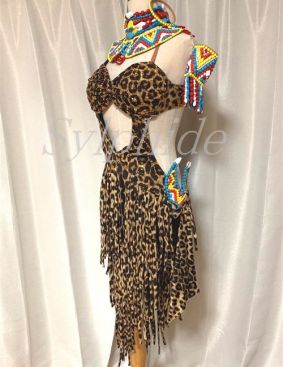 スカートはストロー状のフリンジになっていて、ダイナミックに動き、フロアーに映えます!
