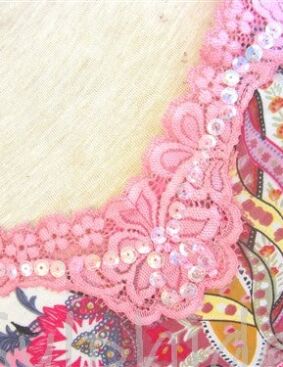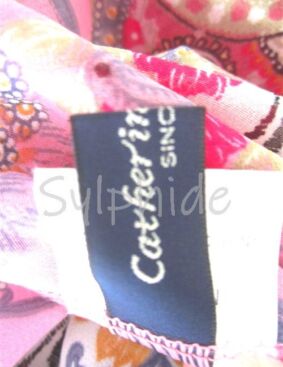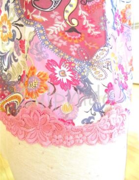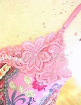 まさしくキャサリンハーネル的な明るくハッピーな柄にレースを合わせた、遊び心ある素敵なキャミソール。白Tシャツなどに重ね着にしても楽しく着こなせそうです。