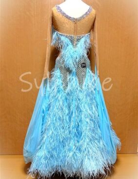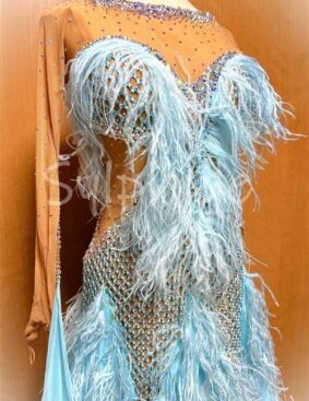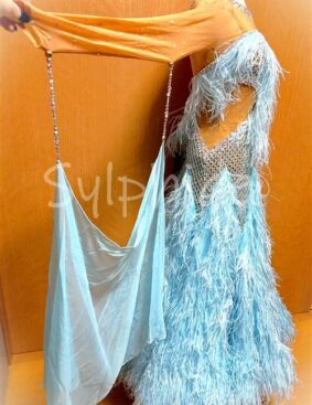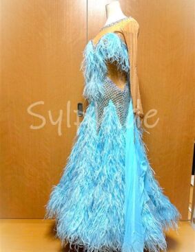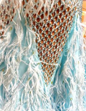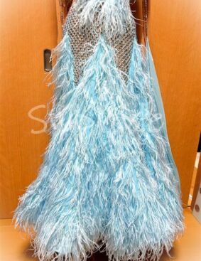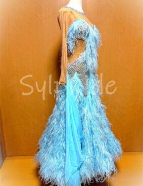 スカート全面にオーストリッチを散りばめ、フワフワと空気を含み揺れ動く様が大変ゴージャス。