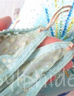 | 状態 | 遠目に目立つ使用感はなく、概ね良好、石落ちほぼ無し。 グローブのメッシュ生地と、ネック内側に若干の変色(写真) グローブの腕部分のゴムが劣化で伸縮しませんが、生地自体は劣化なく伸縮可能 手首内側部分を手を通りやすくするため簡単なリフォームをしている様子(写真) 現オーナーさんは中古ドレスで購入後未使用 |