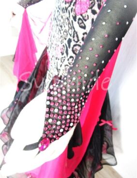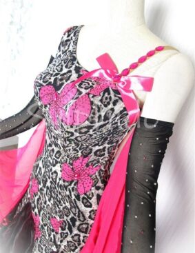 豹柄にピンクのリボンの個性的な柄生地を利用したデザイン。