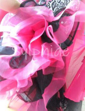 スカートは黒のオーガンジーに、ピンクの小さなリボンがあしらわれています。