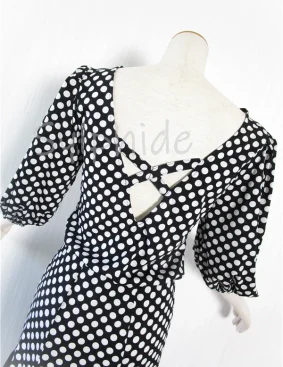 ふんわりバルーンの袖とに、胸元は深いVカットに尖った襟がクラシカル。