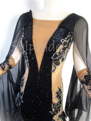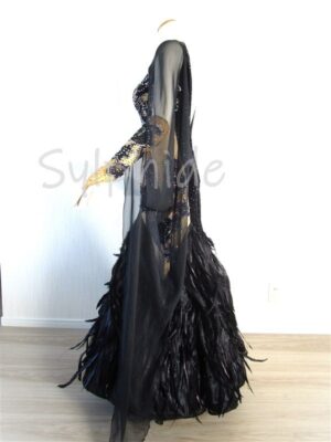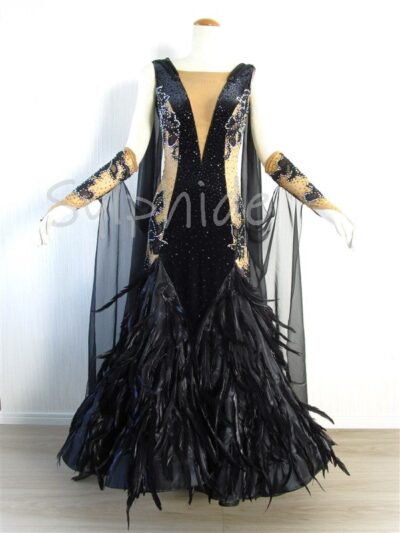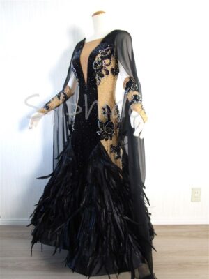 黒とベージュの洗練された配色と羽根のボリュームが存在感があり、気品と美しさのあるRS製スタンダードドレスです。